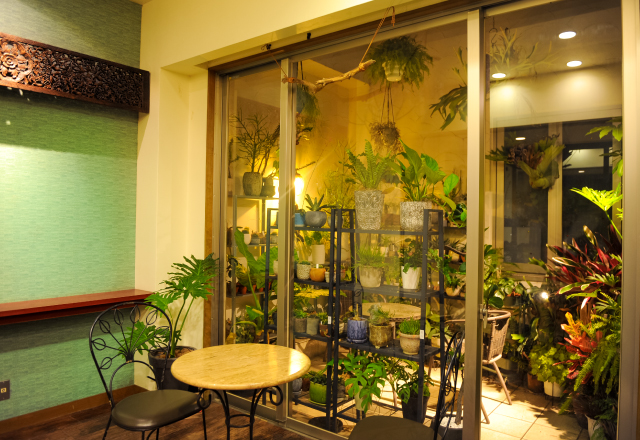 ハワイをイメージさせる店内は、まるで、ラニ(天国)にいるような安らぎの空間を演出。ゆったりとくつろげるイスでリラックスできます。